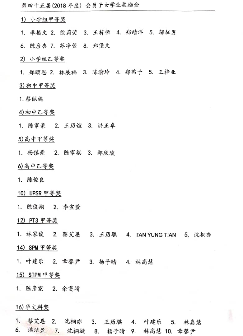 第五十一届(2024年度) 会员子女学业奖励金得奖名单